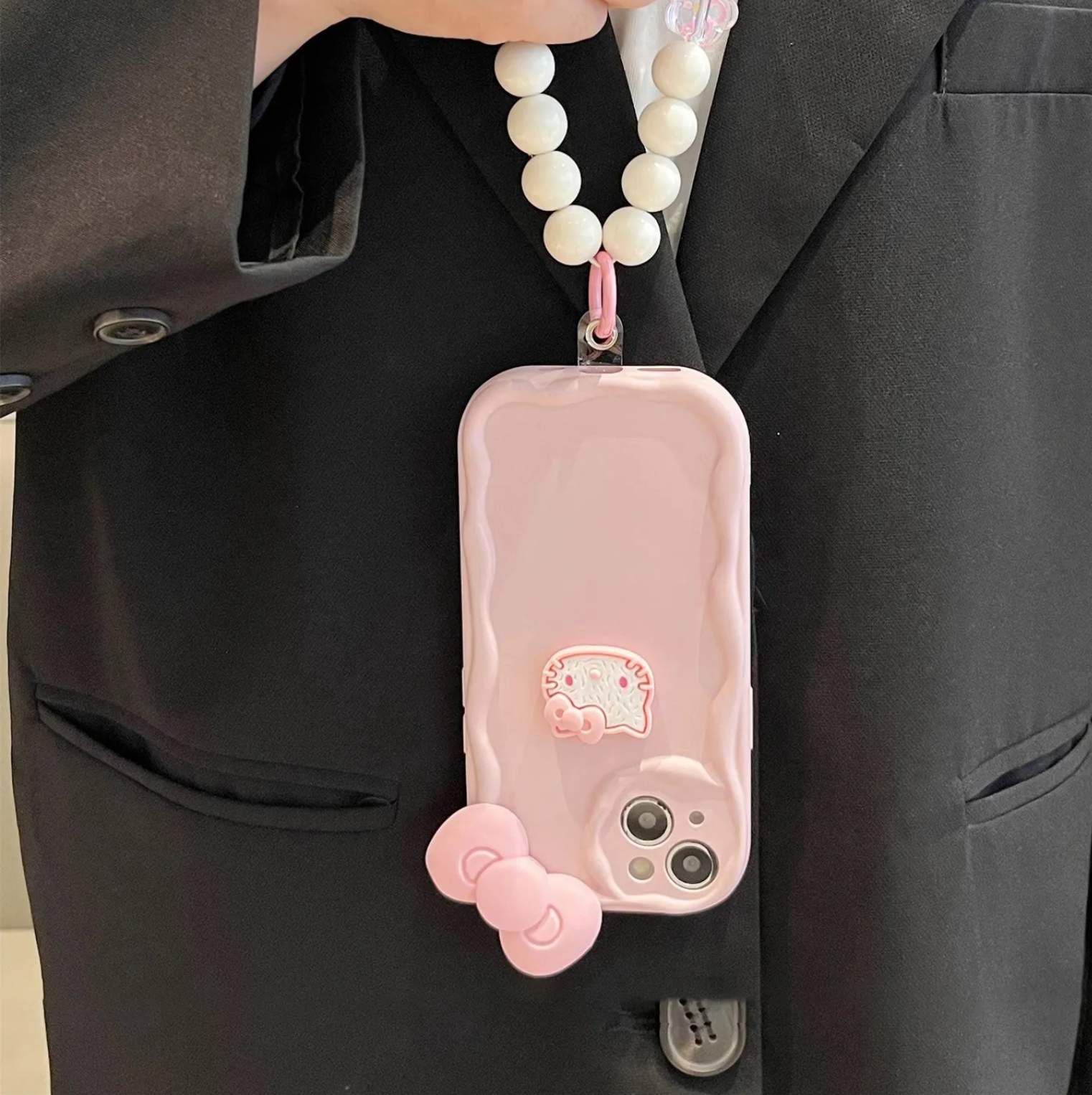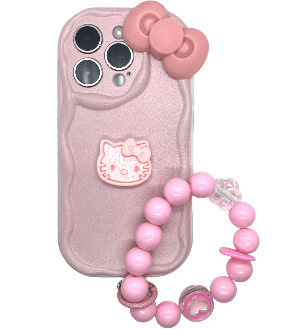 Hello Kitty stiliaus silikoninis telefono dėklas su rožine apyranke ir bantuku
